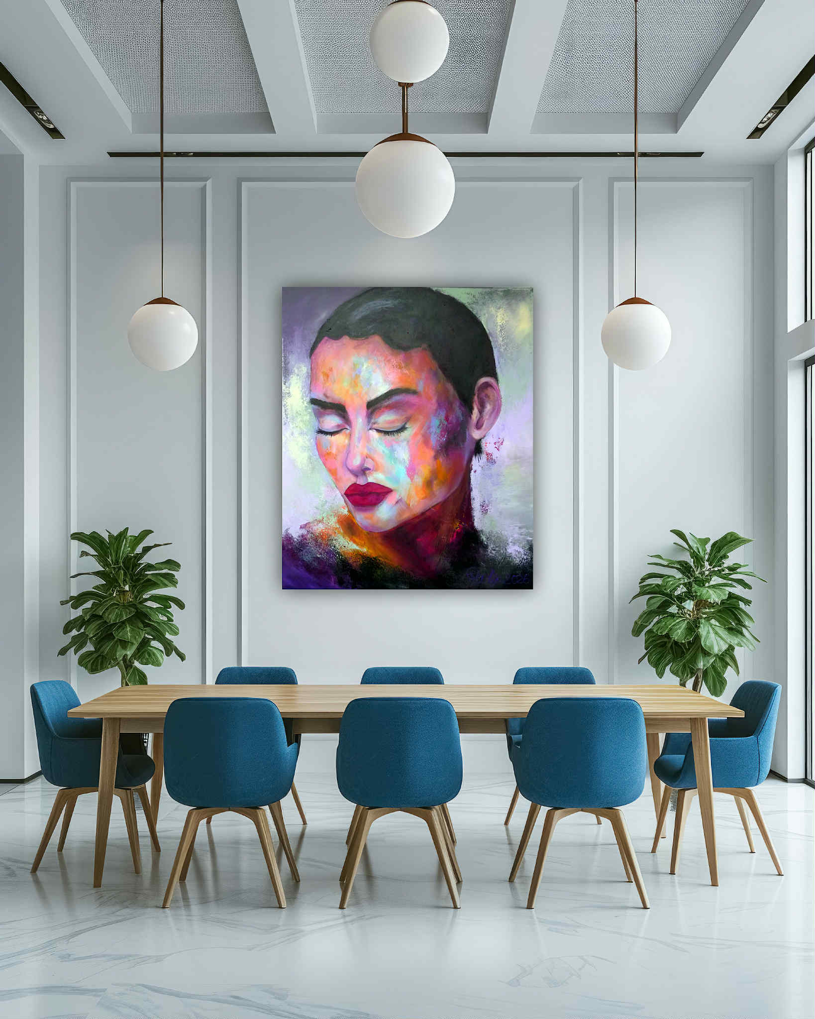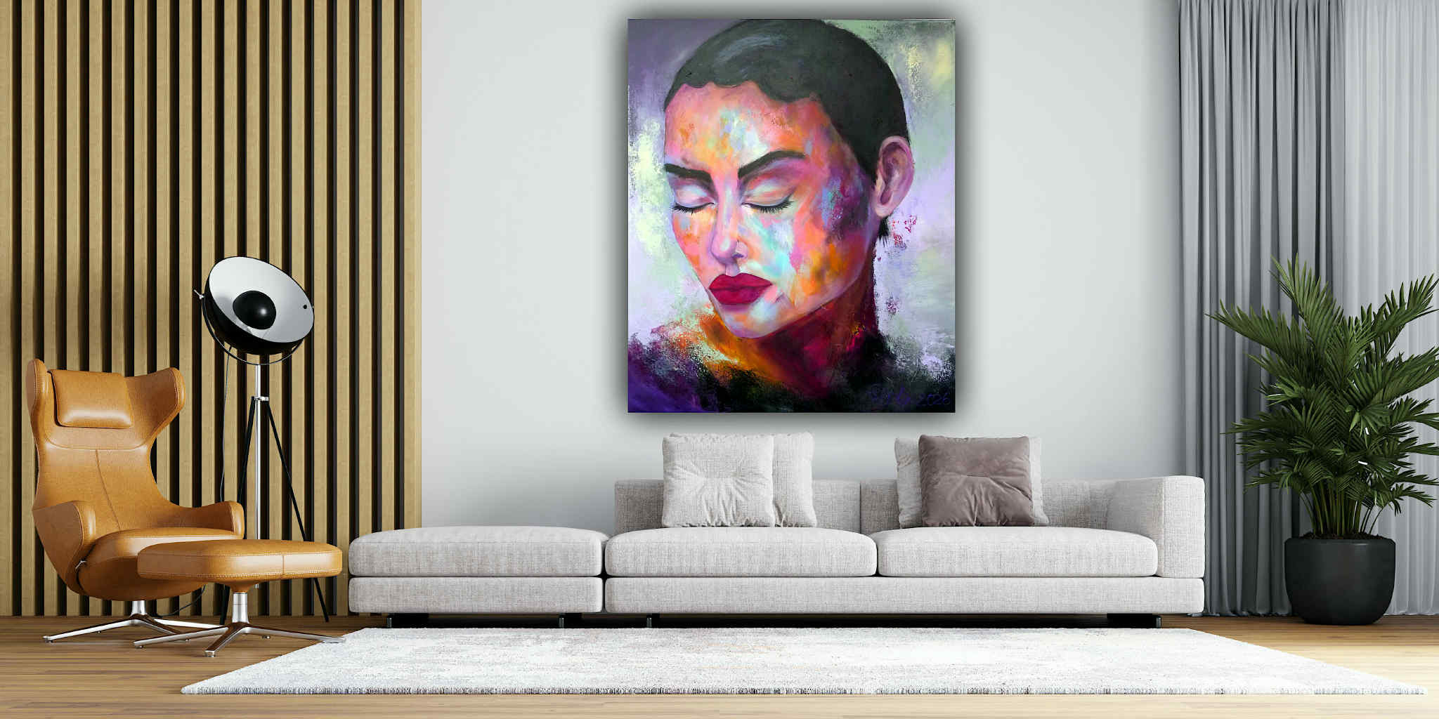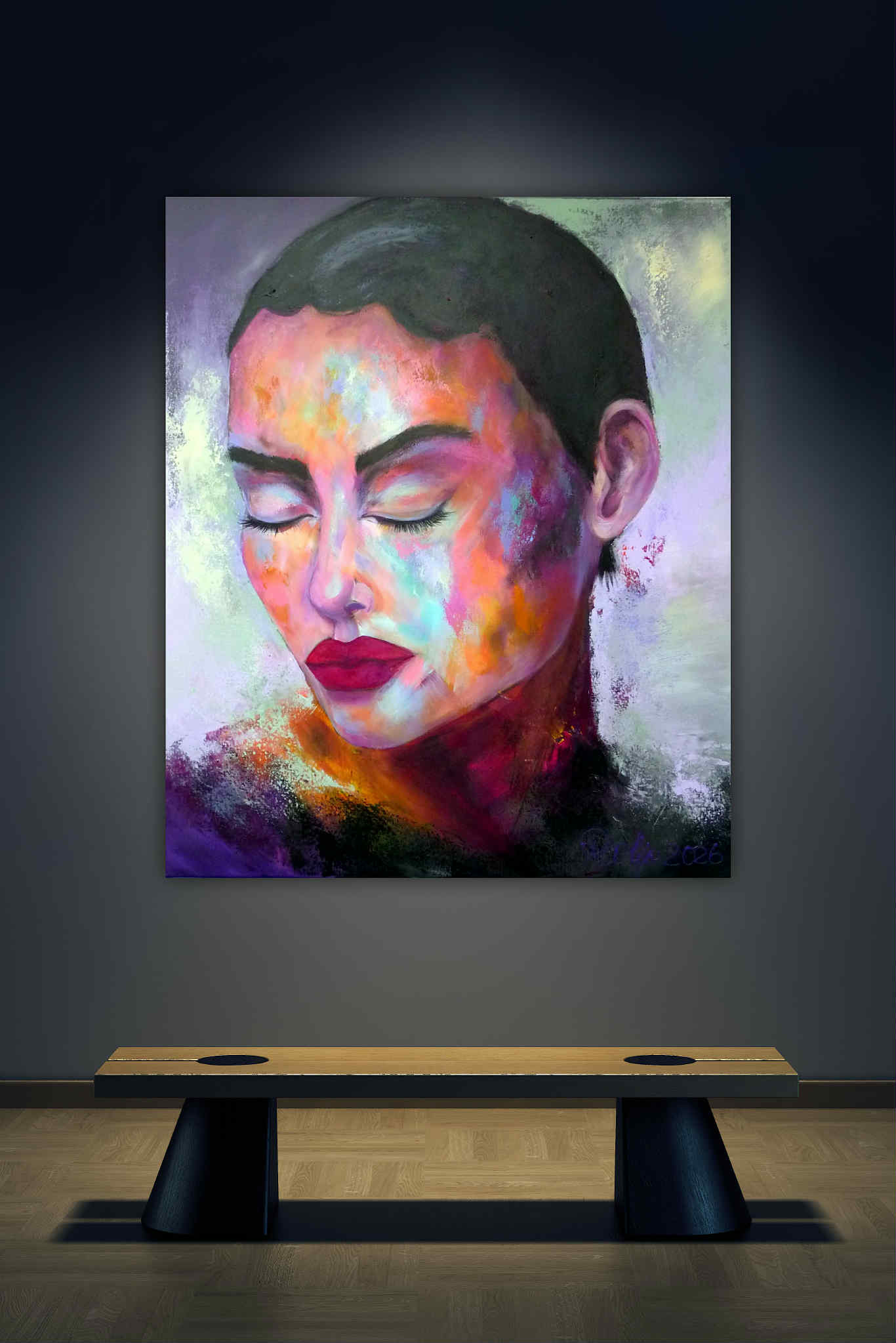 Jolene 2026 110/90 cm Acryl Dieses Werk trägt die Intensität des Ausdrucks und die Tiefe innerer Gefühle. Mit Acrylfarben habe ich bewusst kräftige, kontrastreiche Farbtöne gewählt, die das Selbstbewusstsein und die stille Stärke der Figur unterstreichen. Die halb-abstrakte Form lädt ein, in die Seele zu blicken und öffnet Raum für eigene Interpretationen. Es bringt eine kraftvolle, emotionale Energie in jeden Raum, den es belebt. Manuela Rathje Manuela Rathje