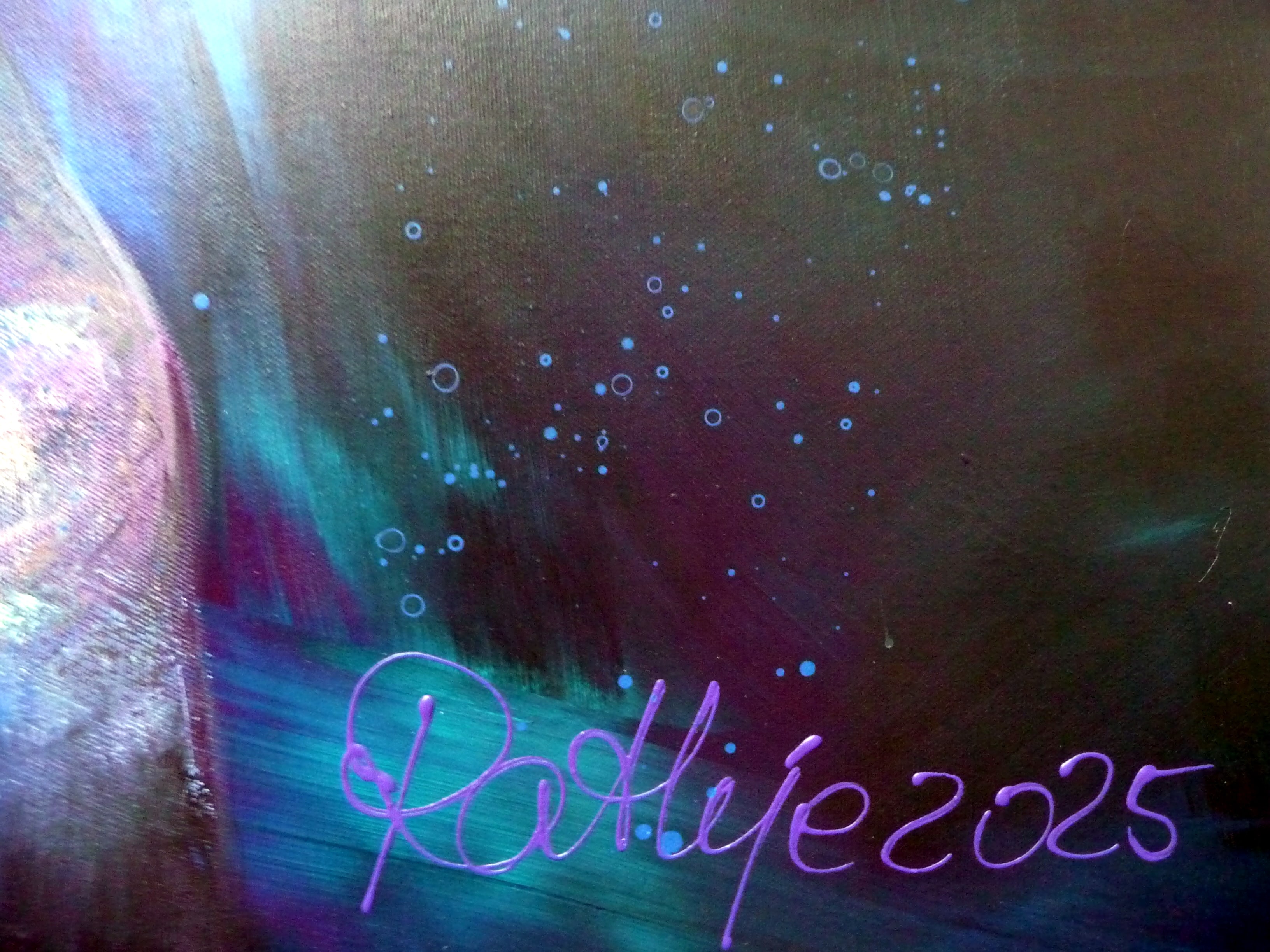 Werk auf Keilrahmen. Kann direkt aufgehängt werden. Rahmung auf Anfrage.